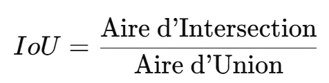 IoU (Intersection over Union) : Cette métrique mesure la précision de la localisation d’un objet. Elle mesure le taux de chevauchement entre la prédiction du modèle et la vérité terrain (ground truth).